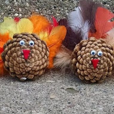 Verbinden Sie die bunte Welt der Pflanzen mit der aufregenden Welt der Tiere und basteln Sie Tannenzapfen Puten!